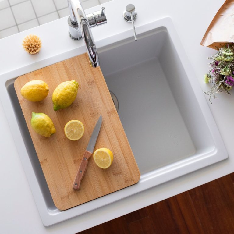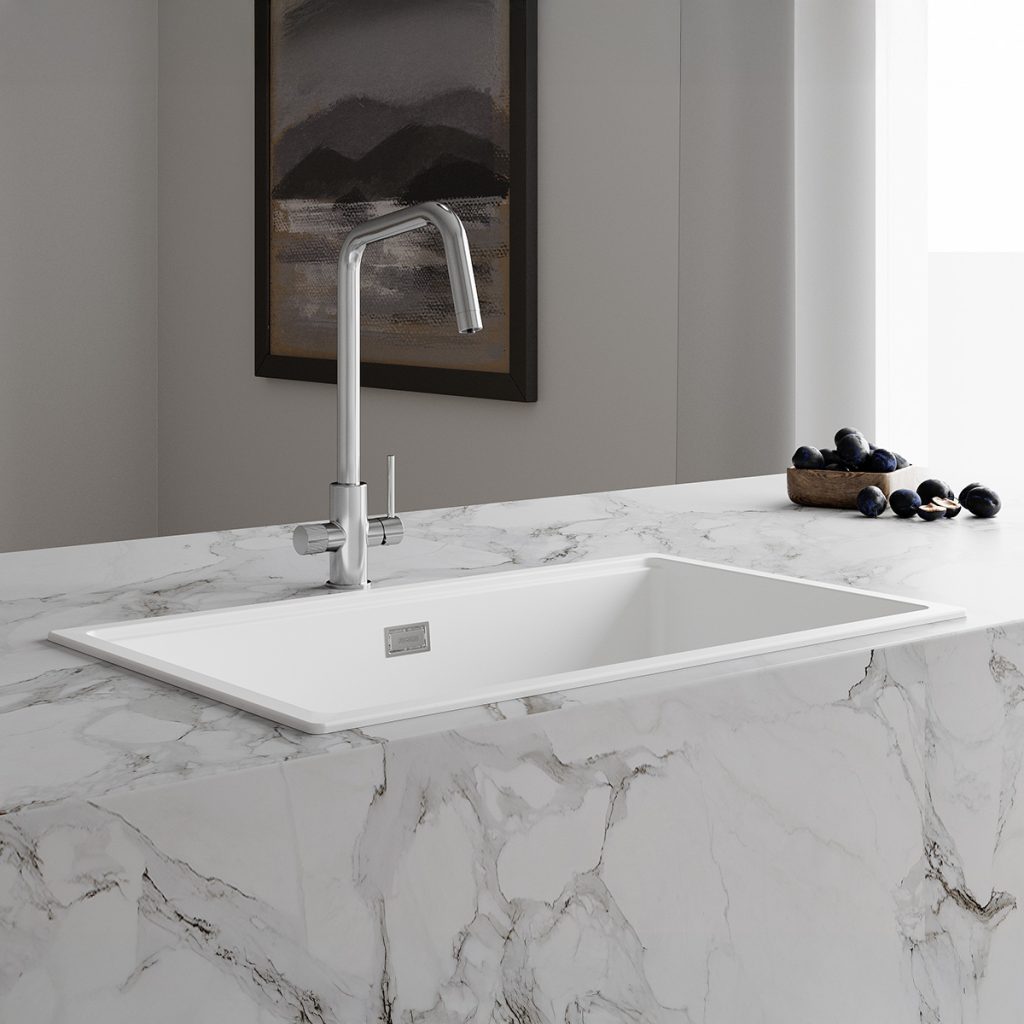 Lava louça fabricado em compósito Magma, produzido com resinas e quartzo de múltiplas granulometrias num processo de fusão a altas temperaturas.