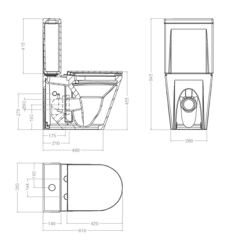 Sanita Rimless e tampa c/soft close sistema Clip-off e tanque c/descarga dupla 3/4.5Lt com entrada inferior.