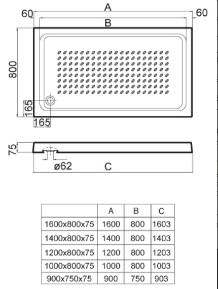 Base de chuveiro em acrílico.