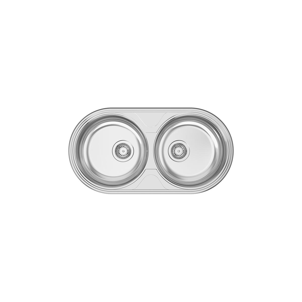 Lava-louça monoestampado 2 cubas redondas ou pia mais escorredor para aplicação de encastrar.