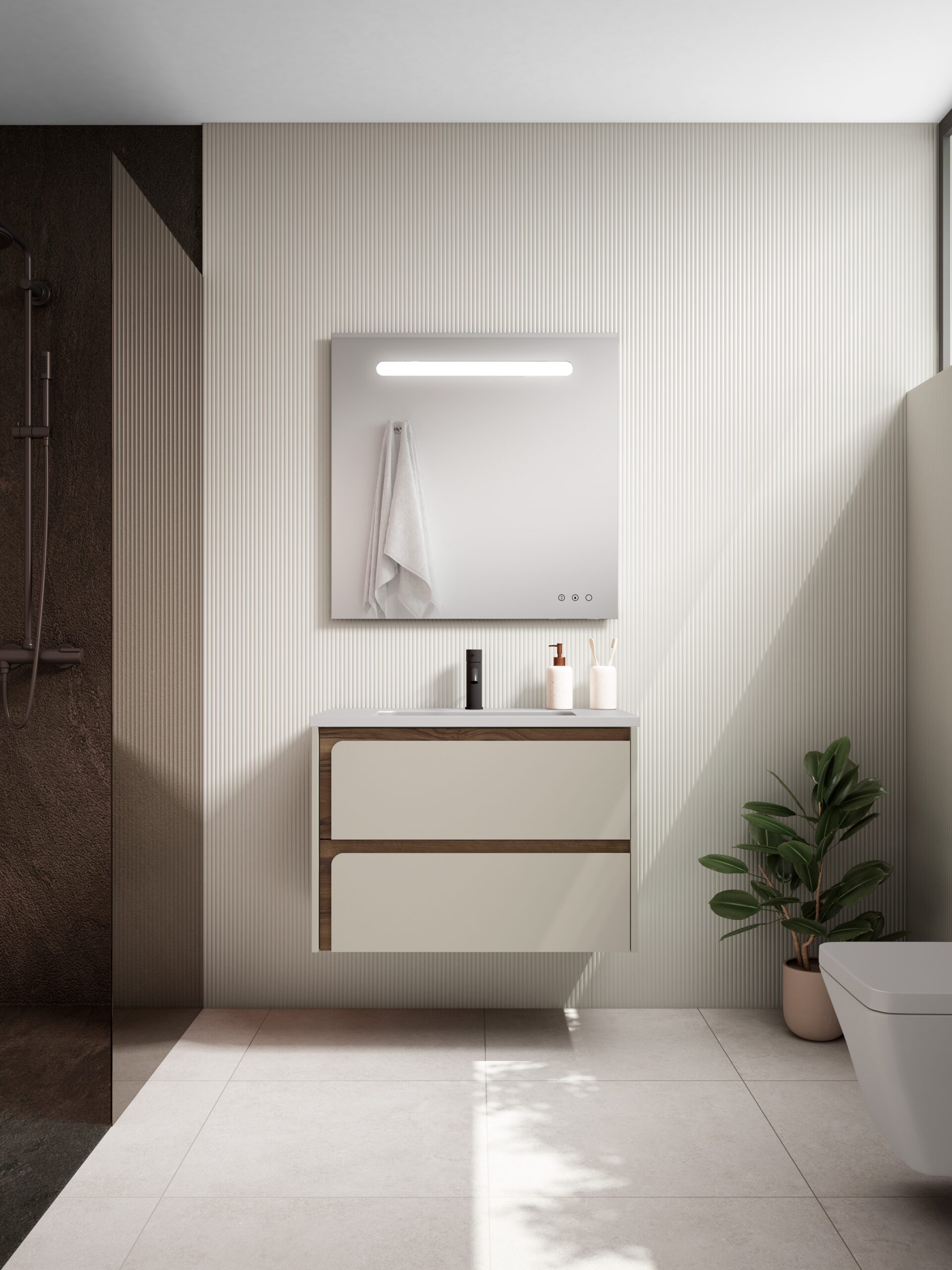 Possibilidade de lavatório integral ou tampo e lavatório de pousar