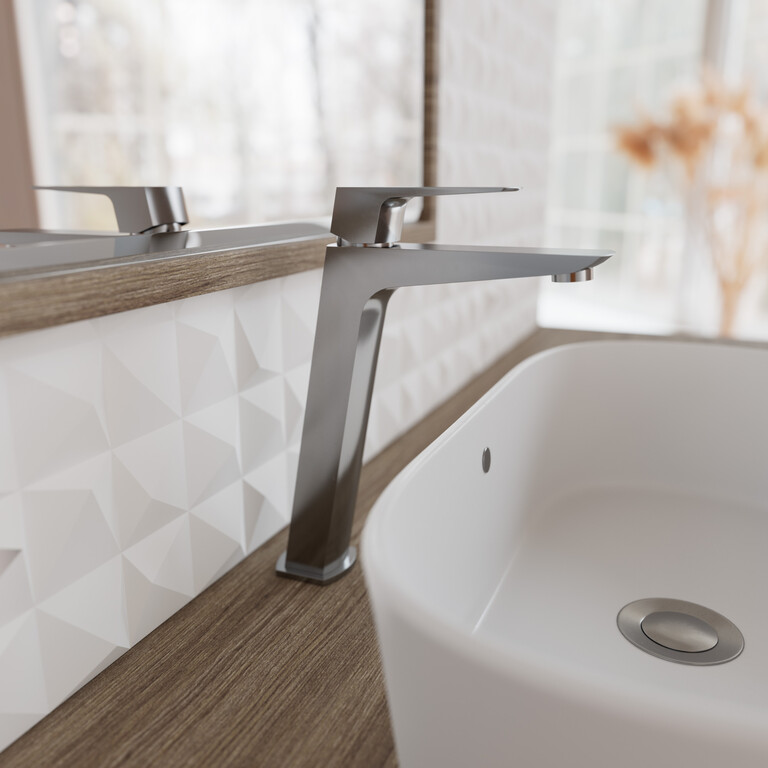 Cores disponíveis: Cromo, preto mate, branco, ouro mate, cobre, Titânio, nickel