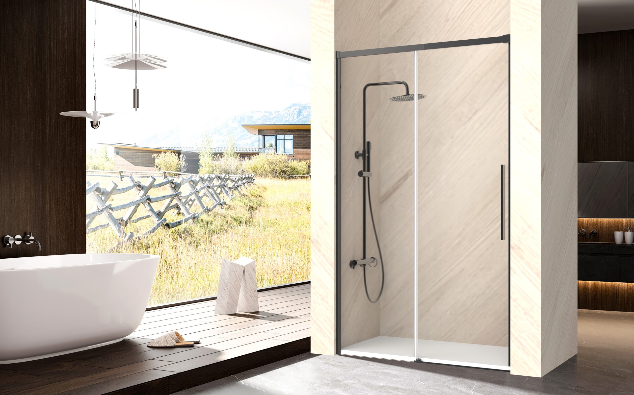 Haste chuveiro fabricada em latão com chuveiro superior slim aço inox redondo de 25×25 e flexível anti-torsão com cartucho cerâmico de 28 sedal.