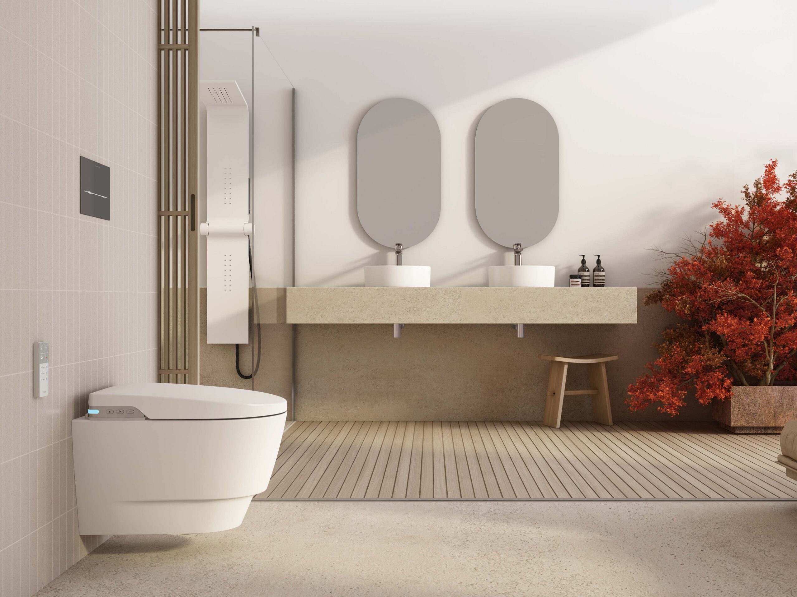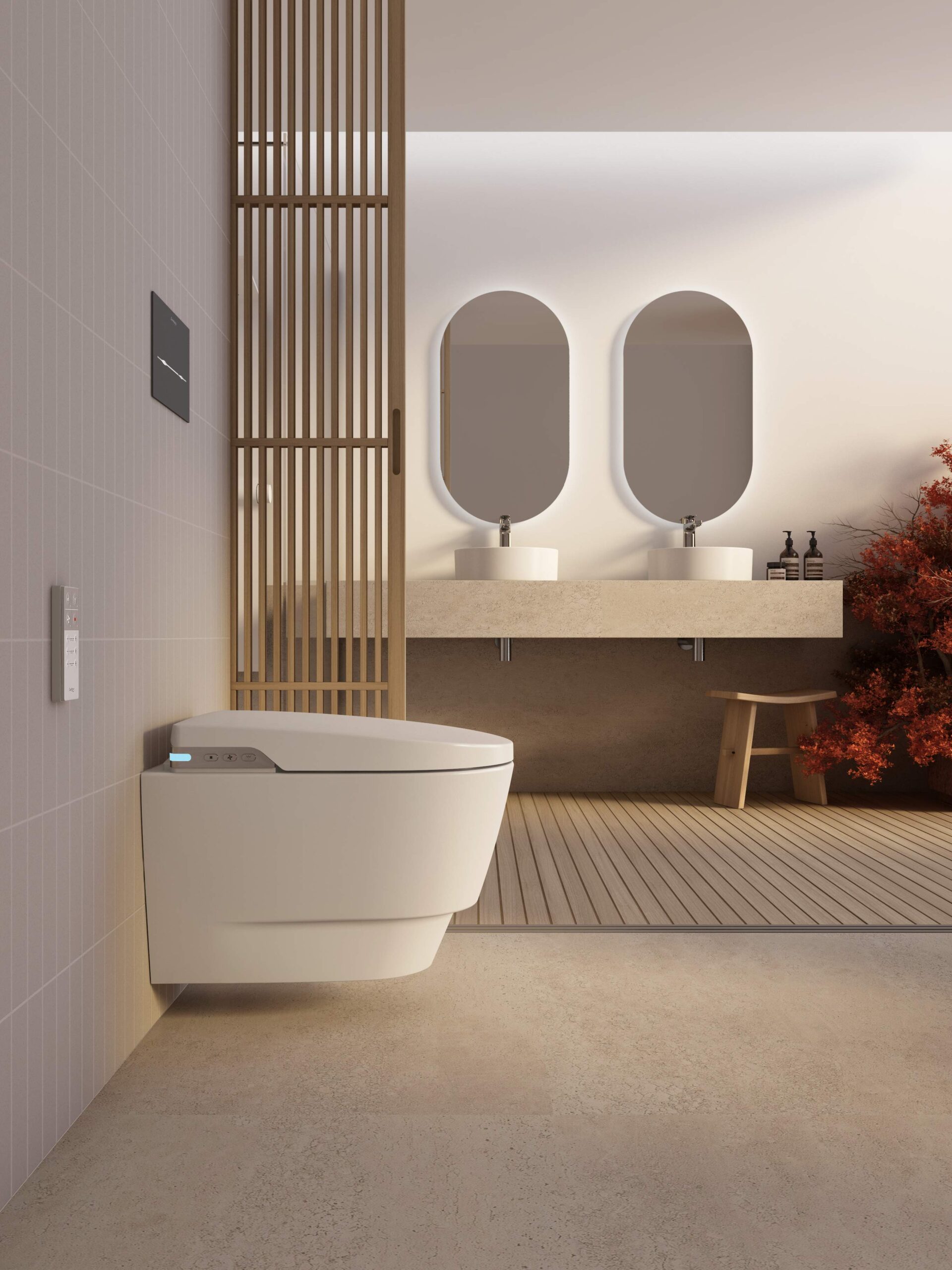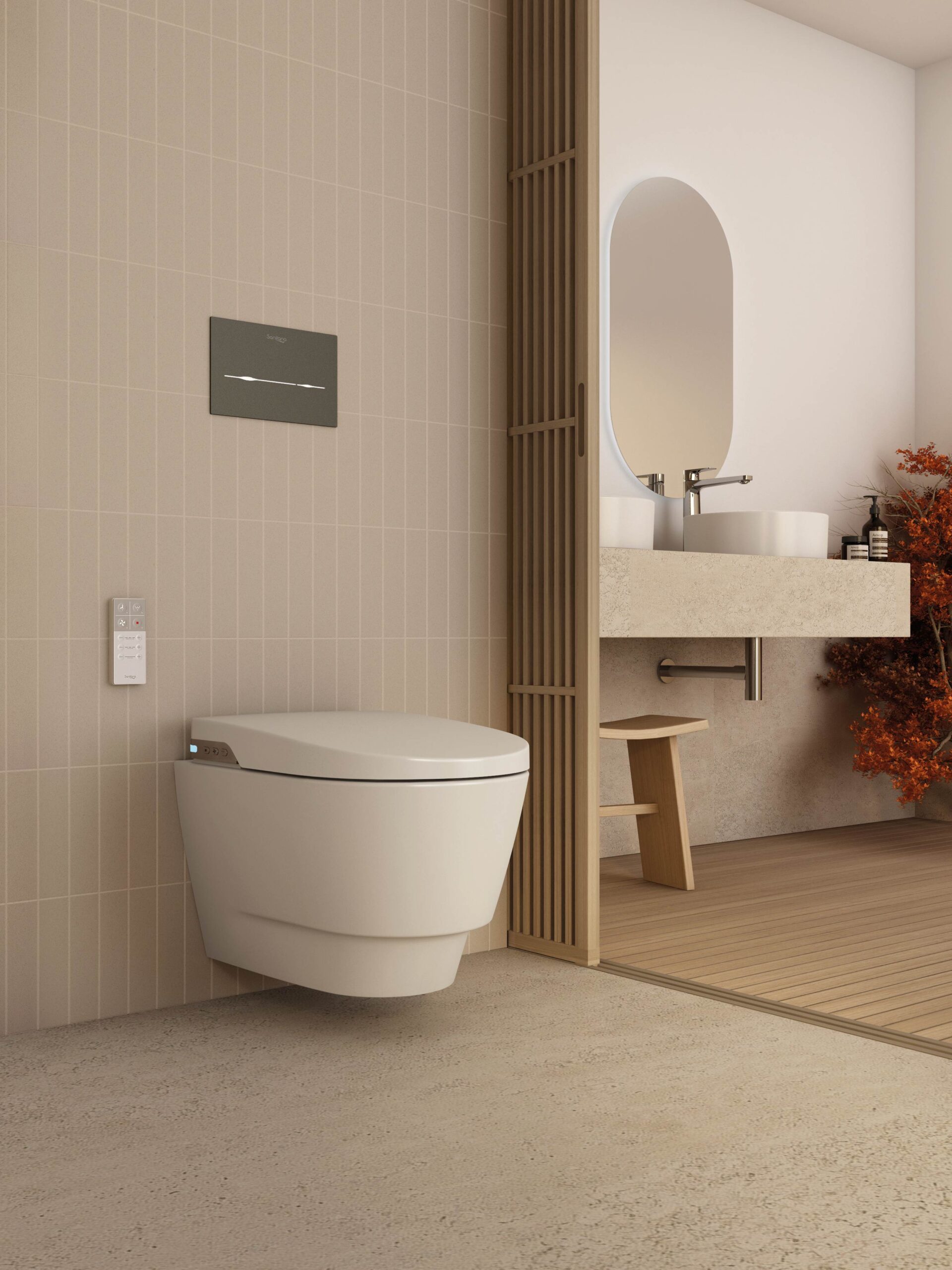 Descarga horizontal. Rimless (sem aro) mais higiénica e fácil de limpar.