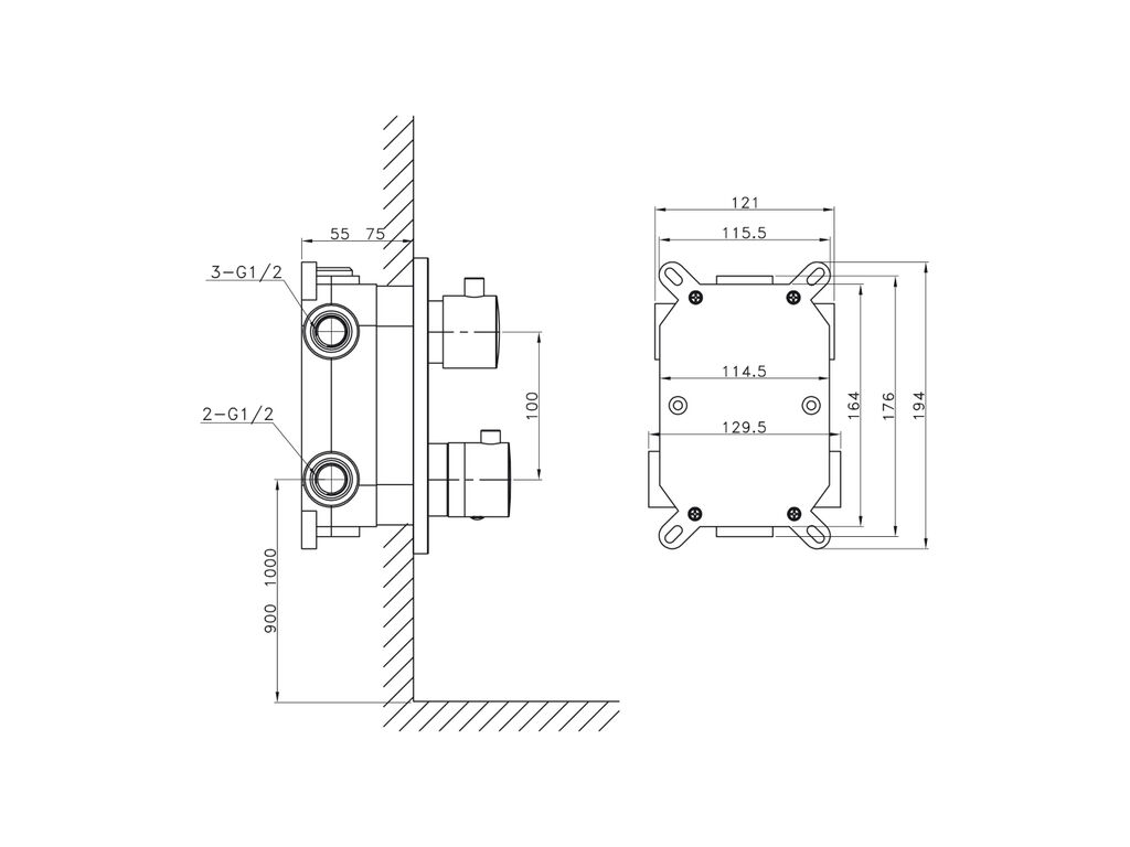 A torneira de chuveiro encastrável apresenta as seguintes características:
