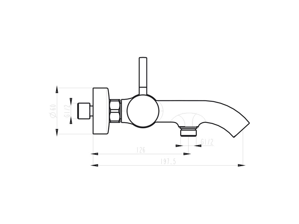 Monocomando banheira à parede com corpo em latão.