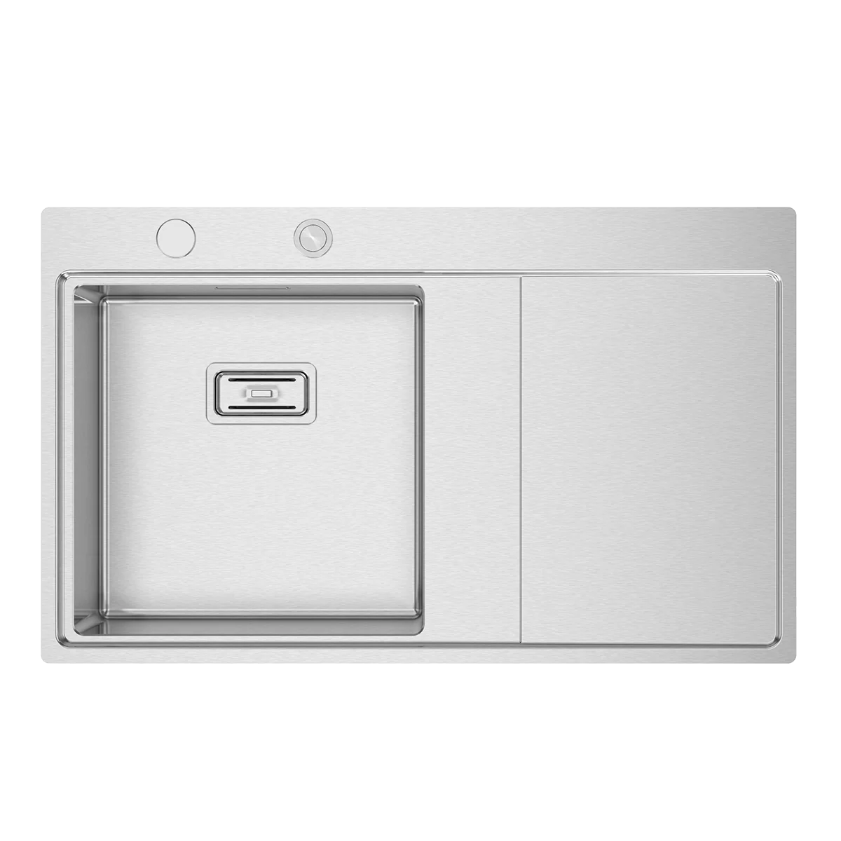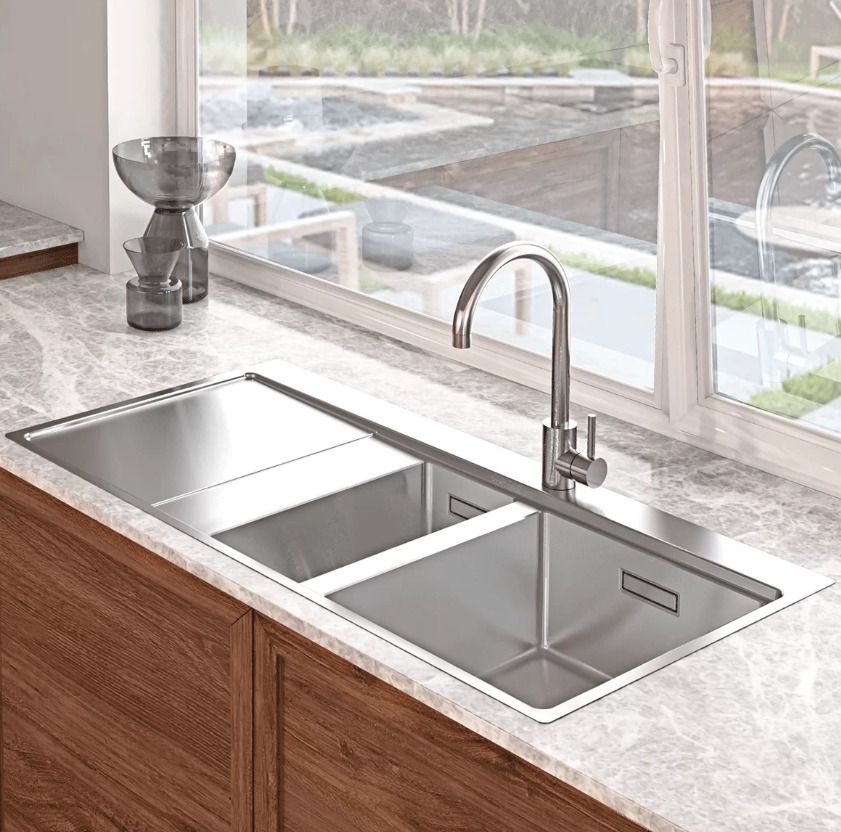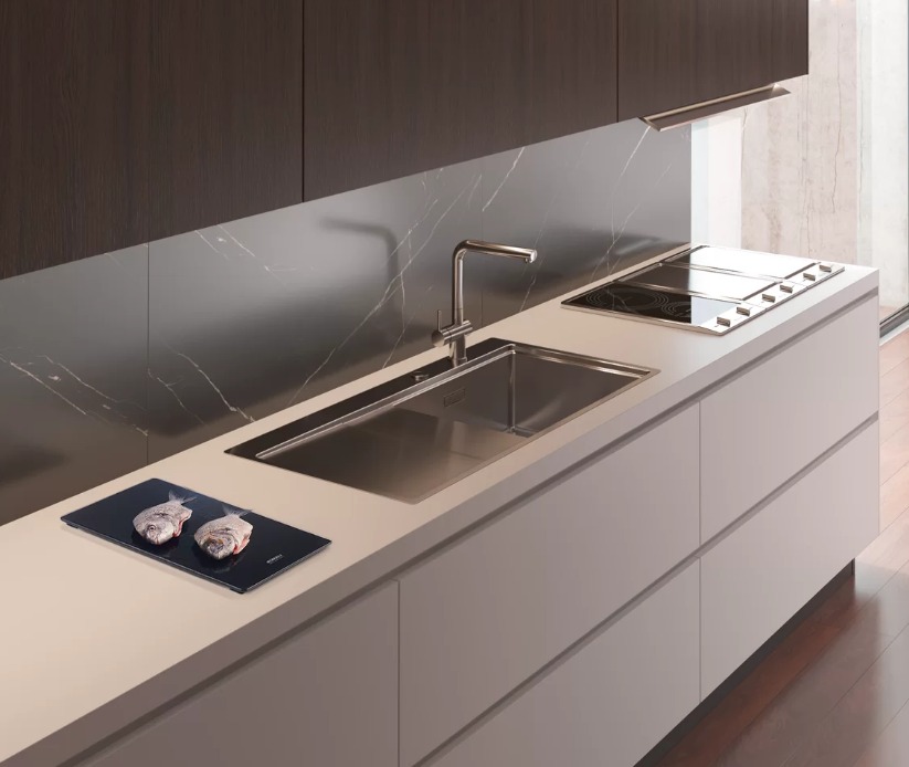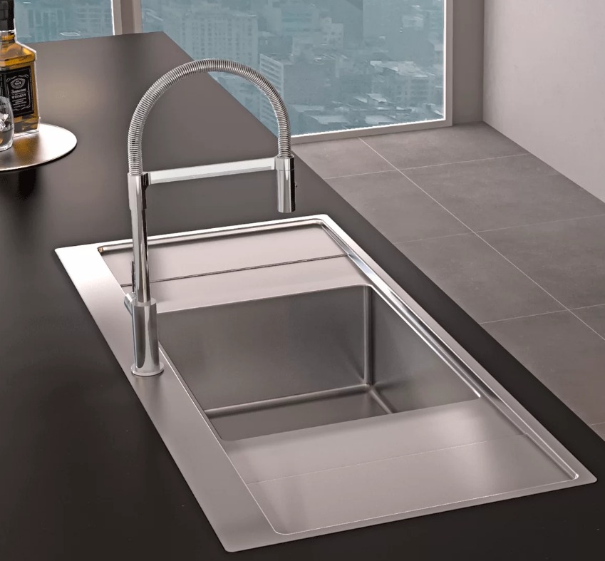 A cuba de profundidade generosa permite a colocação de diversos acessórios, aumentando a sua funcionalidade.